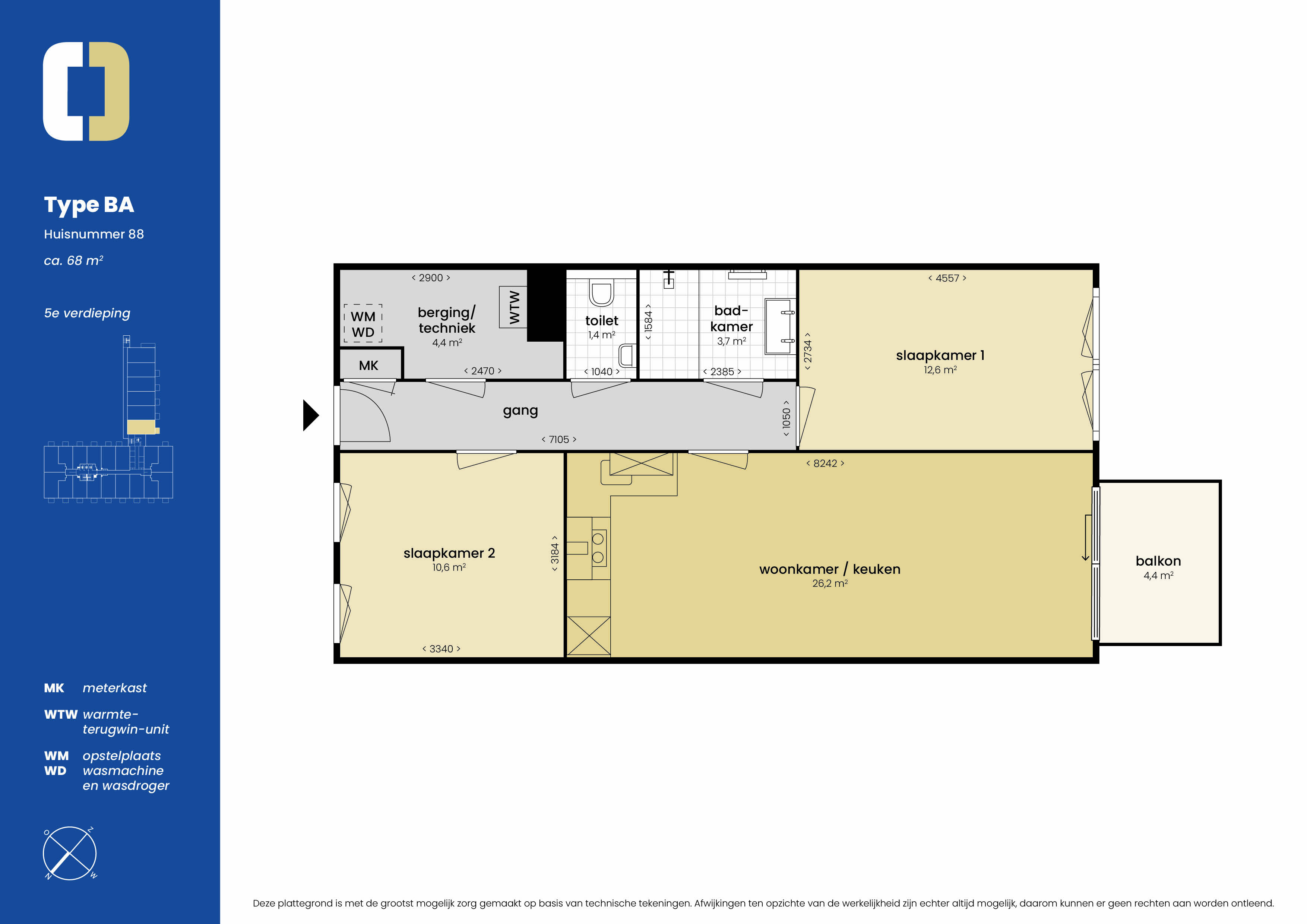 Type BA – ca. 69 m² | balkon van 4,3 m² op het zuidwesten