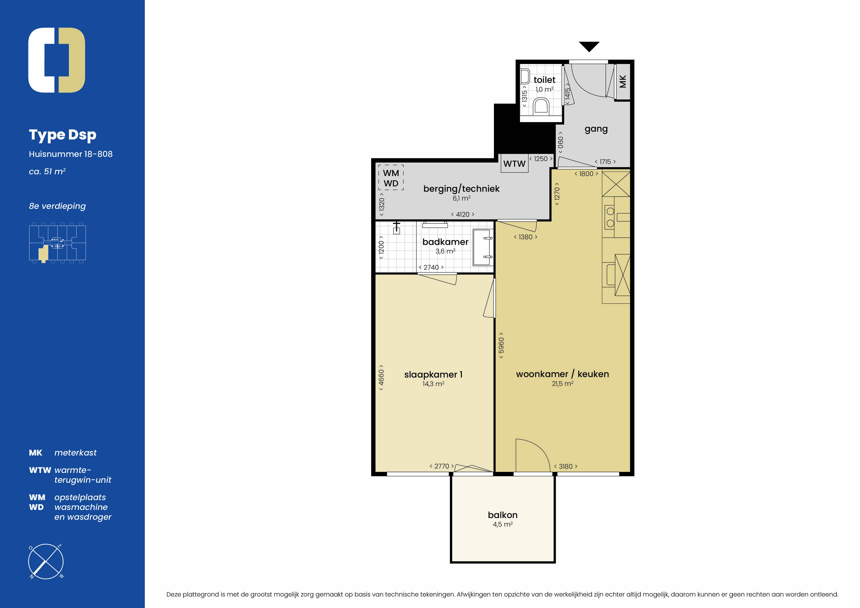 Type Dsp – ca. 51 m² | balkon van 4,5 m²