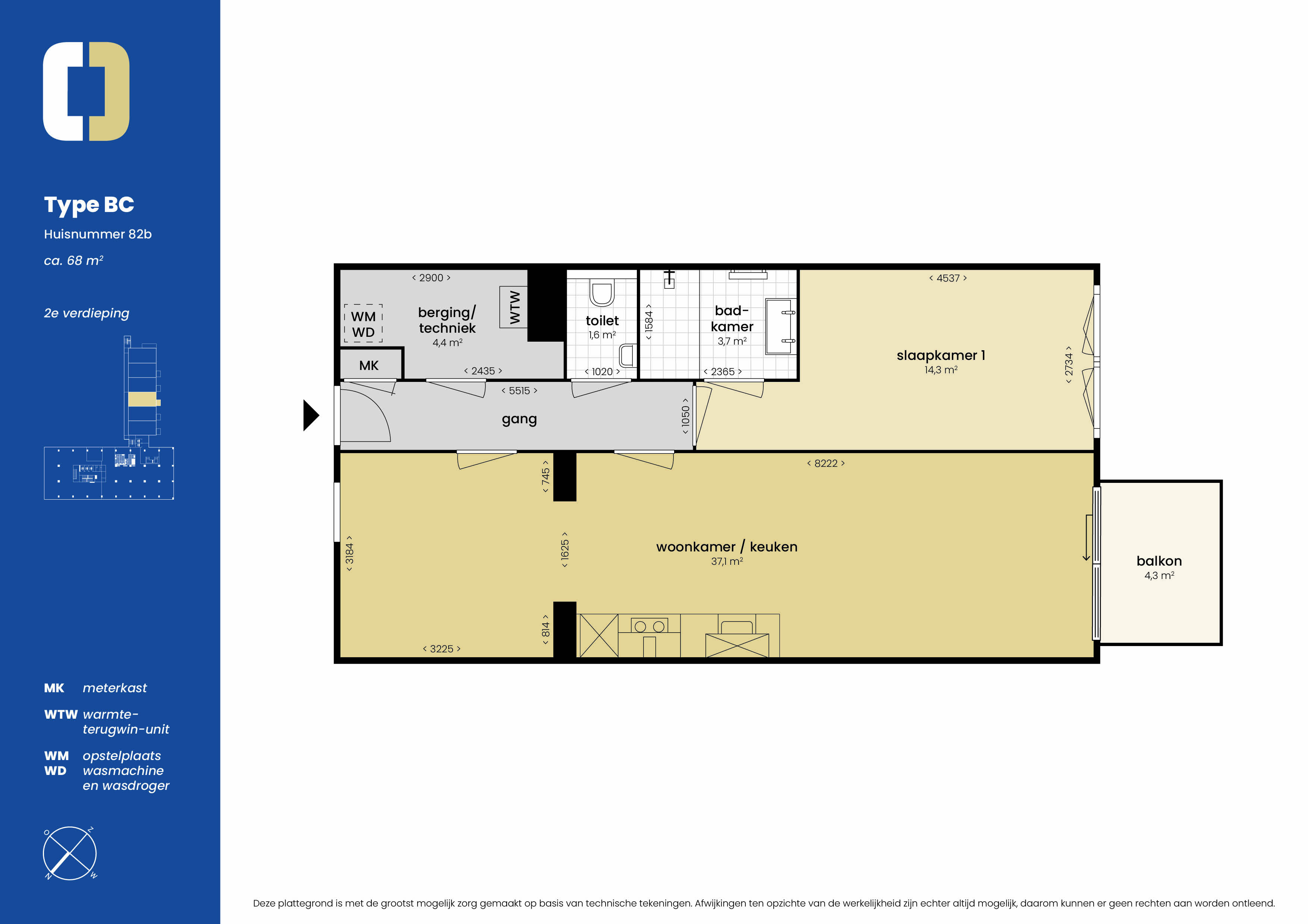 Type BC – ca. 69 m² | balkon van 4,3 m² op het zuidwesten