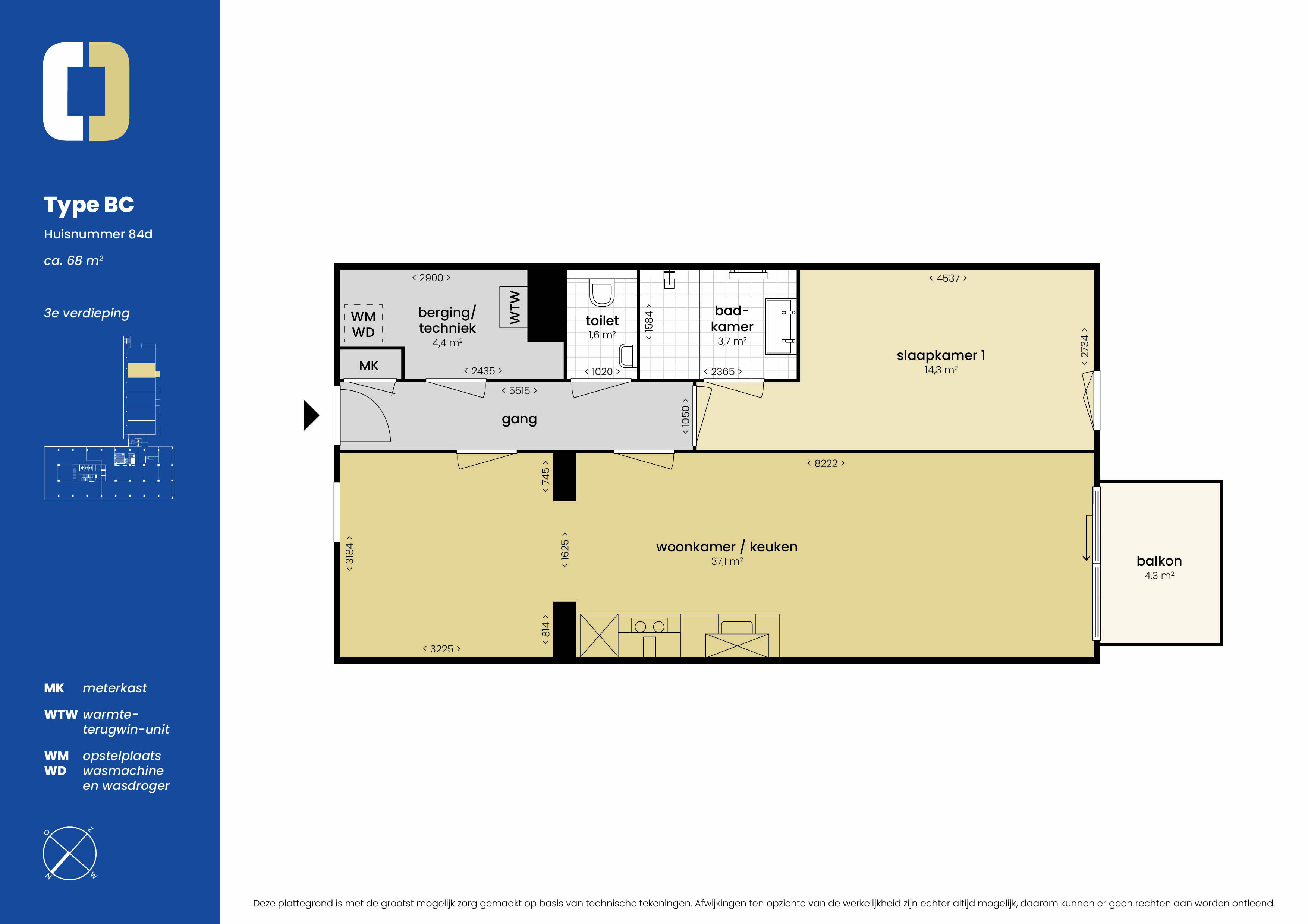 Type BC – ca. 69 m² | balkon van 4,3 m² op het zuidwesten